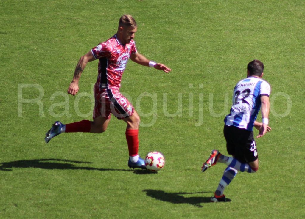 El encuentro arrancó insulso, con dominio del balón por parte del equipo local y con un Guijuelo más o menos ordenado que era capaz de contener al Avilés, quienes por otro lado, tampoco presionaba demasiado. No sería hasta el final de la primera parte cuando los asturianos empezarían a presionar a los verdes, aunque sin ser capaces de marcar antes del descanso.