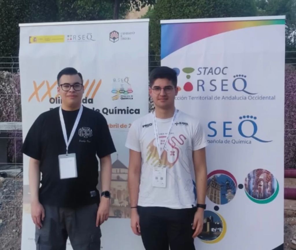 José Luis López y Juan Casquero se desplazaron el pasado viernes a Córdoba para disputar las Olimpiadas Nacionales de Química en la que participaron alrededor de 120 alumnos llegados de toda España. Estuvieron acompañados por su profesor Jesús A. De la Fuente.