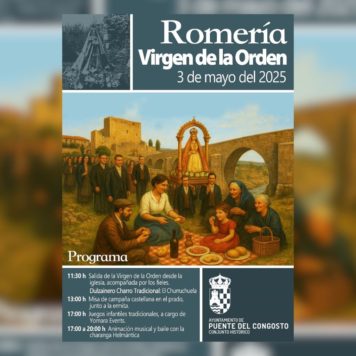 Por otro lado, mañana sábado en Puente del Congosto celebrará la romería de la Virgen de la Orden desde las 11:30 horas con la salida de la imagen de la Virgen desde la Iglesia acompañada por los fieles y la música de El Churruchuela.