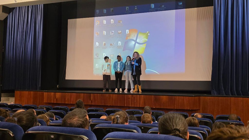 Tras el primer pase sólo para alumnos, este martes, en el Teatro de Guijuelo se proyectó el corto protagonizado por los estudiantes del colegio Miguel de Cervantes, ‘Misión Tierra. El gran encuentro’.