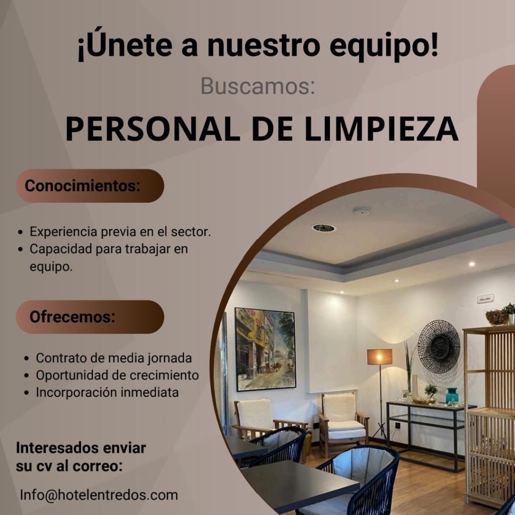 La empresa ofrece contrato a media jornada y oportunidad de crecer en la empresa. Los interesados pueden enviar un correo electrónico a info@hotelentredos.com