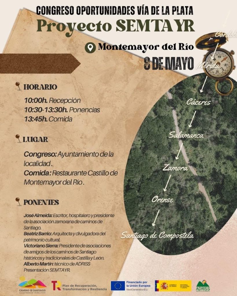 La localidad de Montemayor del Río acogió este jueves la presentación del proyecto Semtayr en nuestro entorno. Un proyecto que se centra en el itinerario jacobeo Vía de la Plata – Camino Mozárabe y que pretende sentar las bases para impulsar el posicionamiento y la consolidación de este tramo como itinerario jacobeo de alto interés estratégico y como alternativa a los trayectos ya consolidados.
