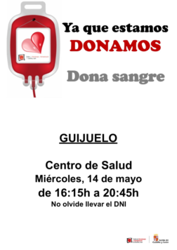 Un equipo del Centro de Hemoterapia de Salamanca se desplaza mañana jueves hasta Guijuelo para llevar a cabo una nueva jornada de donación de sangre en el Centro de Salud del municipio.