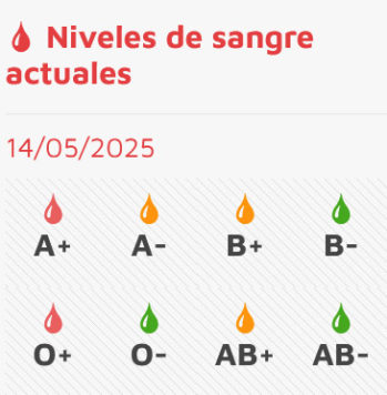 Actualmente, los niveles de A+ y 0+ se encuentran en color rojo y en color naranja, ahora mismo están tanto A-, como B+ y 0-.