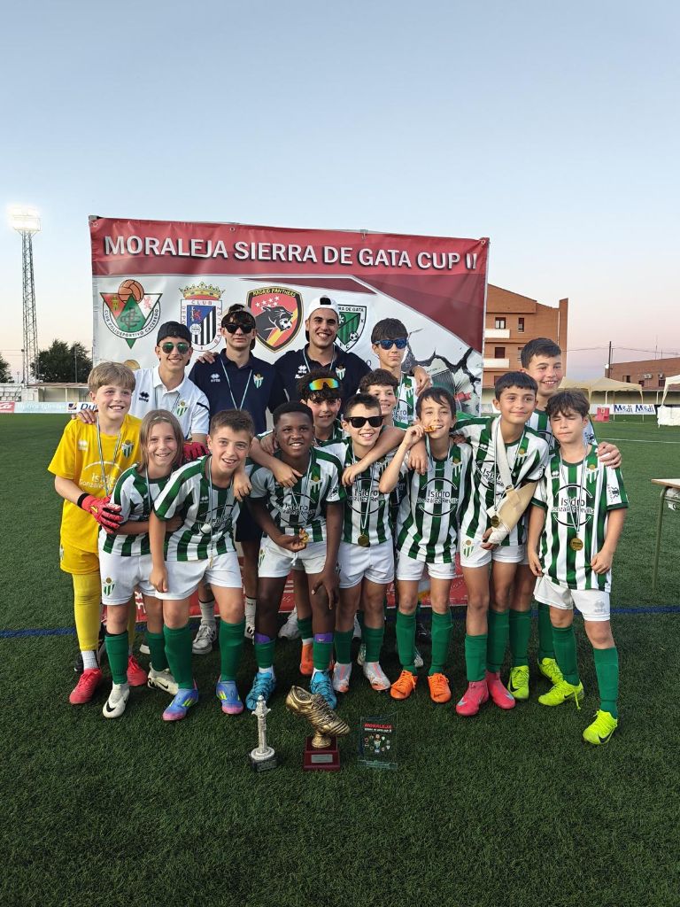 El Alevín A del C.D. Guijuelo se ha llevado el título en el Torneo la Moraleja Sierra de Gata Cup que se ha celebrado el pasado sábado. En la fase de grupos se impusieron al Cacereño, Madrid Panther y Badajoz. En los cuartos, el Guijuelo goleó por 5 a 1 al Madrid Parthers. En la semifinal, ante el Sertanense, el Guijuelo pasó en penaltis, tras el empate a uno. En la final, los guijuelenses fueron superiores, tras vencer 3 a 0 a Pizarro. Además, Marcos Hernández fue el máximo goleador del torneo.