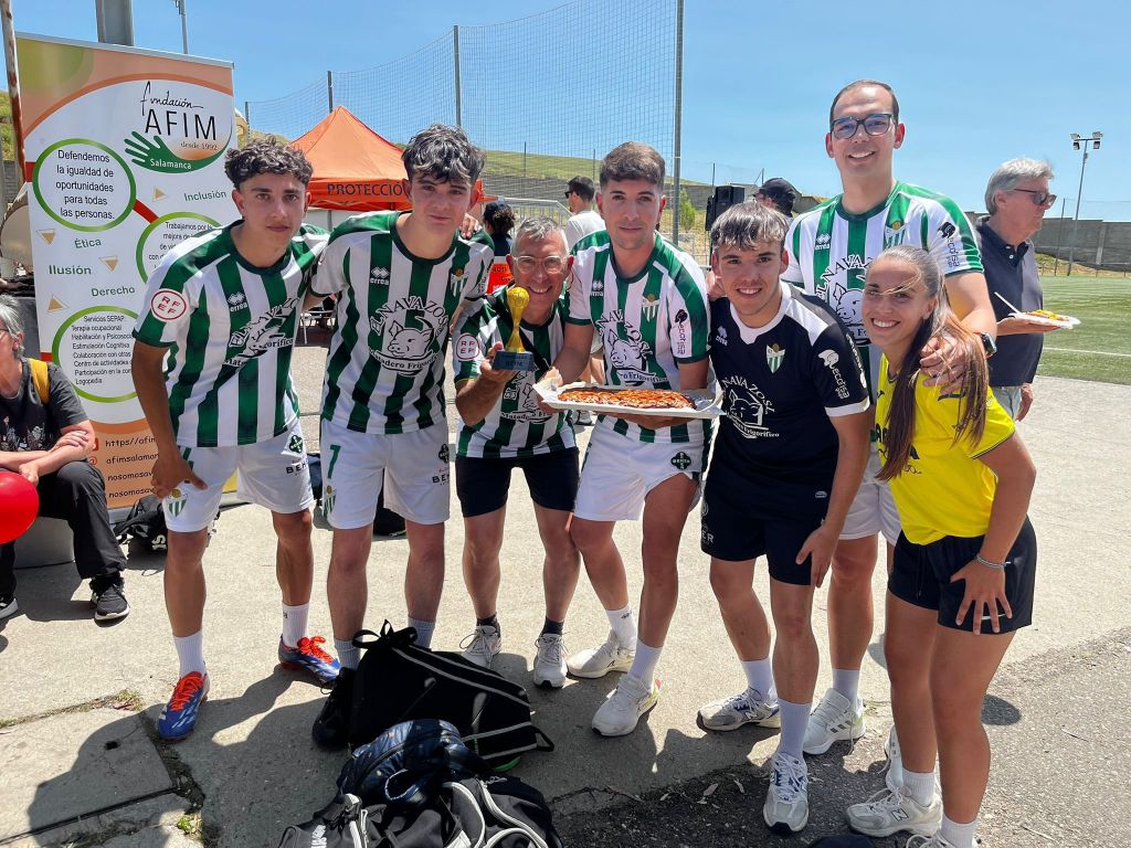 El combinado de jugadores, ex jugadores, canteranos y empleados del C.D. Guijuelo se dieron cita el pasado viernes en la X edición del Mundialito por la Inclusión que se que celebró en los campos Ángel Pérez Huerta organizado por la Fundación AFIM Salamanca. Los guijuelenses se llevaron la victoria en el torneo de fútbol 7.