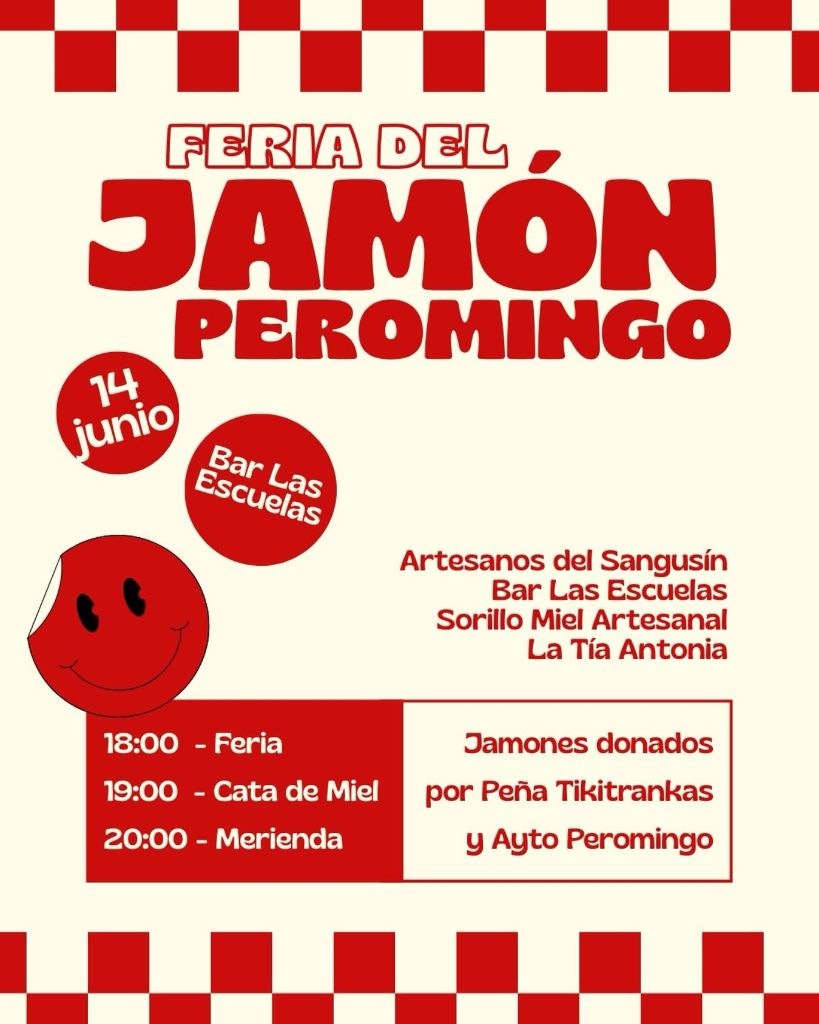 Además, en Peromingo tienen previsto celebrar el sábado la feria del Jamón, en el bar de las Escuelas. La cita comenzará a las seis de la tarde con la muestra de Artesanos del Sangusín, Sorillo Miel Artesanal y La Tía Antonia. Durante la tarde se ofrecerá una cata de miel y una merienda.