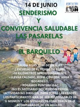 Por su parte, la asociación sociocultural El Tejado ha organizado, para el sábado, una jornada de senderismo y convivencia, en la zona de Las pasarelas y El barquillo. La salida está prevista para las 9 de la mañana desde las escuelas.