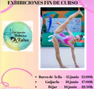 Las gimnastas del club Kairos tienen una doble cita esta tarde. A las cinco en el Pabellón Municipal de Guijuelo se llevará a cabo la tradicional exhibición de fin de curso, donde las alumnas mostrarán todo lo aprendido durante la temporada. A las siete y media de la tarde será en Béjar. En la mañana de ayer se llevó a cabo otra exhibición en el municipio de Barco de Ávila.