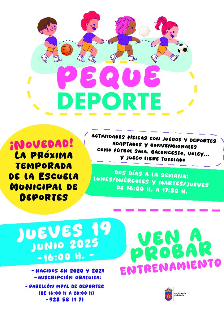 En la tarde de ayer se presentó la propuesta ‘Peque Deporte’ en la que los niños y niñas nacidos en los años 2020 y 2021, podrán realizar actividades físicas con juegos y deportes adaptados convencionales. También practicarán fútbol sala, baloncesto, vóley y juego libre tutelado.