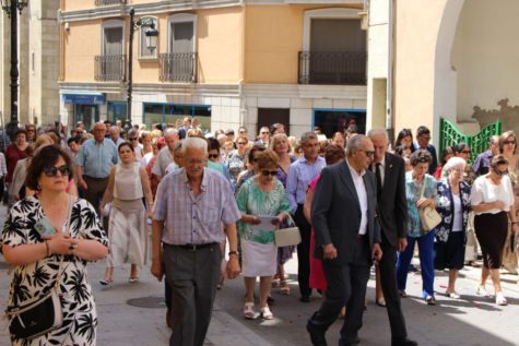 Una representación de la Corporación Municipal asistió a la celebración que comenzó antes de las doce del mediodía en la Iglesia de Nuestra Señora de la Asunción y tras la cual, los asistentes salieron en procesión hasta la plaza Mayor.