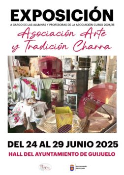 Después de finalizar el curso 24-25 los alumnos de las diferentes clases de la asociación Arte y Tradición Charra exponen sus trabajos en el hall del Ayuntamiento de Guijuelo.