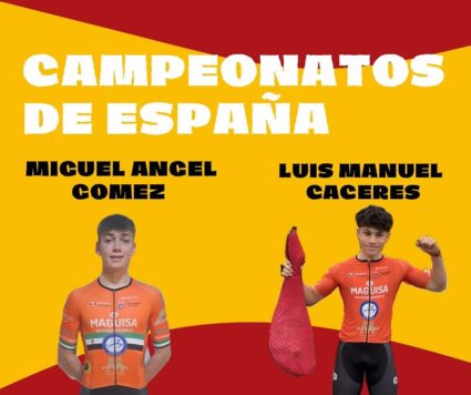 Los cadetes del Maguisa Guijuelo, Miguel Ángel Gómez y Luis Manuel Cáceres defenderán los colores de Extremadura y Castilla y León, respectivamente, en el Campeonato de España que comienza mañana viernes 4 de julio en Tarazona de la Mancha. Participarán el viernes en la contrarreloj y el domingo en la prueba en línea.