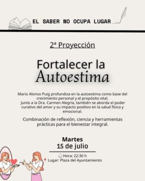 Por su parte en Los Santos continúan con la actividad El saber no ocupa lugar, que en el día de hoy se centrará en el fortalecimiento de la autoestima. La propuesta se llevará a cabo, como en la anterior ocasión, a las diez y media de la noche en la plaza Mayor de la localidad.