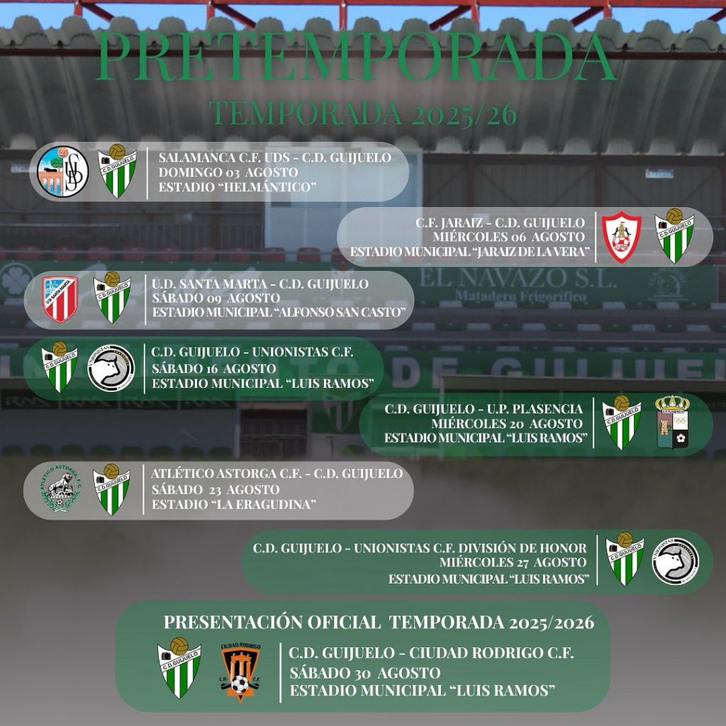 El conjunto guijuelense ha anunciado todos los encuentros para esta pretemporada 25-26. En total serán ocho citas.