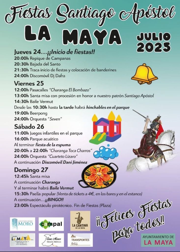 Pasacalles, charangas, misa con procesión y actividades infantiles en la celebración de las Fiestas de Santiago Apóstol en el municipio de La Maya.