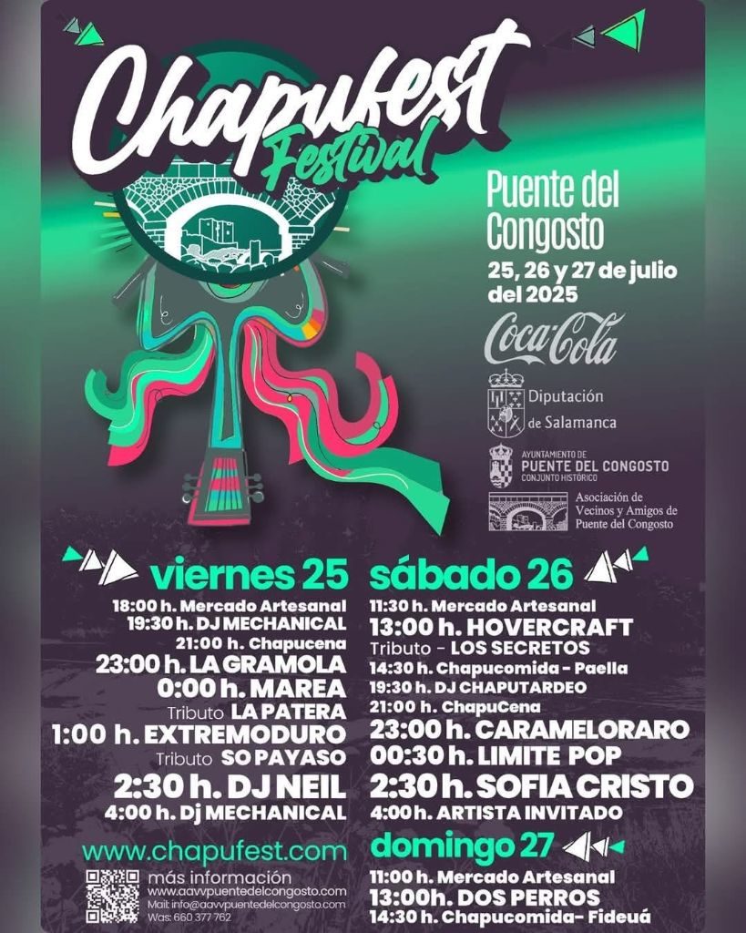 Durante tres días, Puente del Congosto celebrará el Chapufest con actuaciones de grupos como La Gramola, Hovercraft, tributo a Extremoduro, Límite Pop, Carameloraro además de las sesiones de Dj Neil, Mechanical y Sofía Cristo.