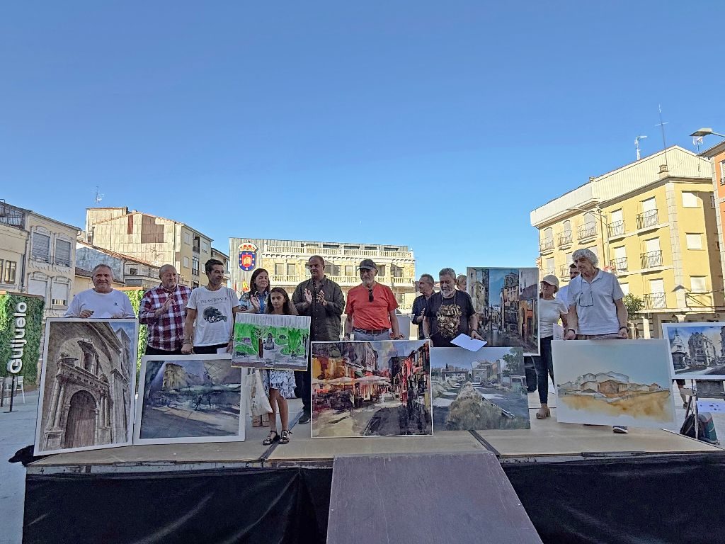 a edición número diecisiete del Certamen de pintura al aire libre ‘Villa de Guijuelo, que se ha celebrado este sábado en el municipio, ha concluido con la entrega de los premios a las mejores obras, en la que ha participado Roberto Martín, alcalde de Guijuelo, acompañado de la coordinadora de Cultura, María Jesús Moro, además de los organizadores y también los patrocinadores del concurso.