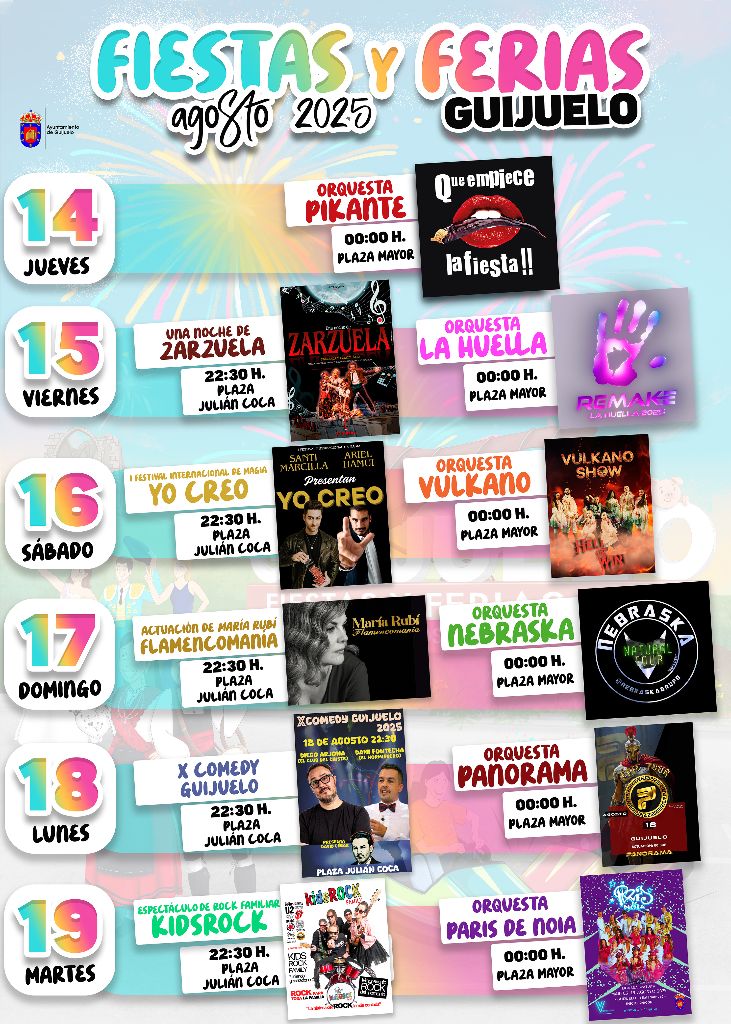 El programa de las Fiestas de Guijuelo, que tendrán lugar durante el mes de agosto contará con más de 60 citas, incluyendo el preámbulo festivo y los días propios de las Fiestas de Nuestra Señora de la Asunción.