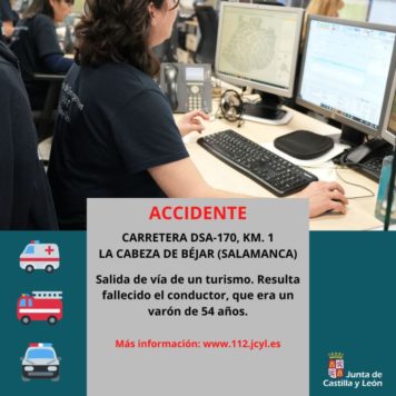 De madrugada, pasadas las 4:30h, un varón de 54 años fallecía después de que su turismo se saliese de la vía en el km 1 de la DSA-170, a las afueras de La Cabeza de Béjar.