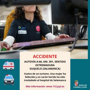 El Servicio de Emergencias 1-1-2 Castilla y León dieron avisa a los sanitarios que se trasladaron hasta el lugar del accidente, donde había dos personas heridas y una de ellas se encontraba inconsciente. Horas más tarde, se confirmaba el fallecimiento de la mujer y, también, que un varón de 51 años había sido trasladado al Hospital.