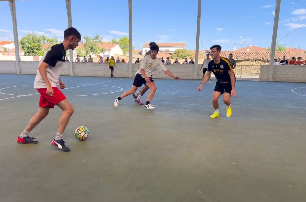 La V edición del torneo de fútbol sala de Montejo está llegando a su recta final. Esta tarde están programados cuatro partidos en los cuartos de final. A las siete, Tato’s frente a Montejo, a las ocho, Los amigos del padre frente Tartyparty FS. A las nueve, Mou Team se mide a Sorihuela y las diez, Fuenterroble frente a Team Nani.