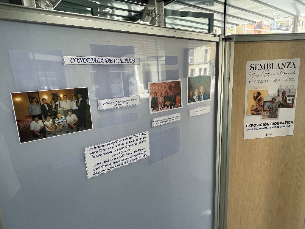 Durante estos días festivos, la entrada del Ayuntamiento acoge una exposición dedicada a la pregonera de las Fiestas ‘Semblanza de Inés María Bernardo’.