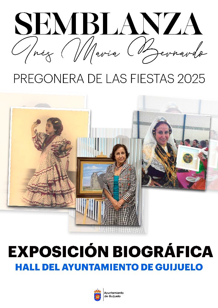 Durante estos días festivos, la entrada del Ayuntamiento acoge una exposición dedicada a la pregonera de las Fiestas ‘Semblanza de Inés María Bernardo’.