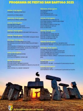 El domingo tendrán lugar la alborada, una misa y procesión en honor al santo y la III gymkhana ‘Noche de misterio en Los Santos’, para terminar el fin de semana con la orquesta Musical Compás y Dj.