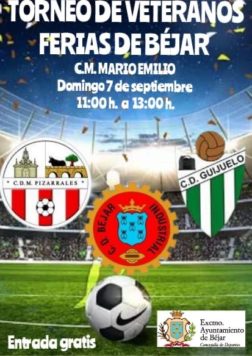 El torneo de veteranos Ferias de Béjar, con un formato de triangular, reunirá el próximo domingo a los equipos veteranos de Guijuelo, Béjar y Pizarrales. El torneo se disputará, desde las 11 y hasta las 13 horas, en el campo de Mario Emilio y la entrada será gratis.