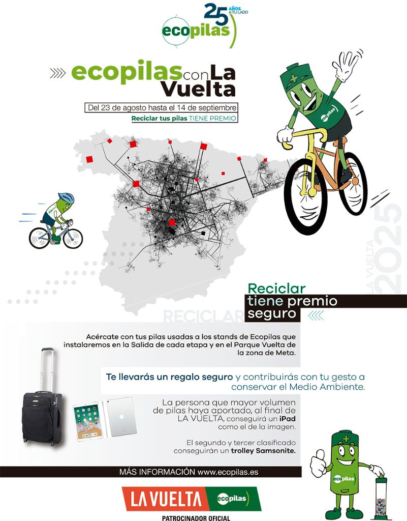 Este viernes, 12 de septiembre, La Vuelta ciclista a España llegará a Guijuelo con el fin de la etapa 19. Por este motivo el Ayuntamiento de Guijuelo colabora con Ecopilas para lanzar en el municipio la campaña ‘Reciclar tiene premio seguro’.