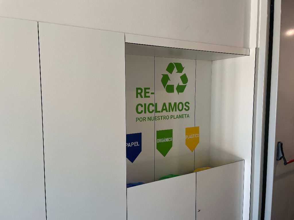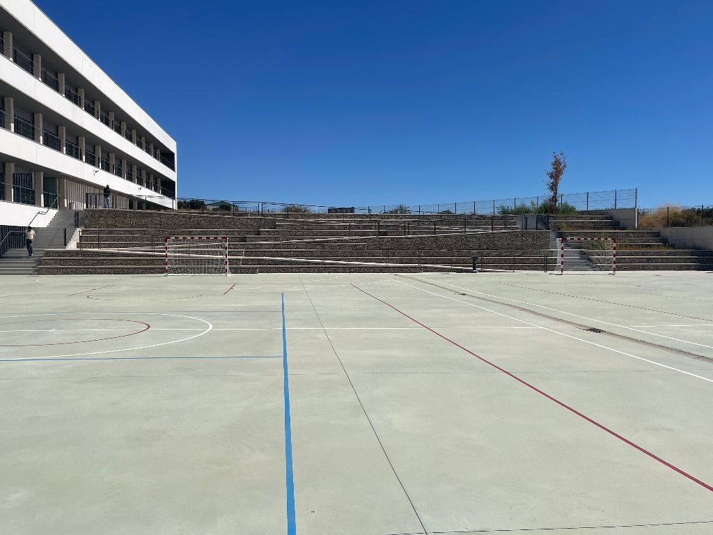 Asimismo, en la zona de administración se ubican los despachos de dirección, jefe de estudios, secretaría, orientación, conserjería, salas de visitas, sala de profesores, fisioterapia, despacho del AMPA y despacho de alumnos; y una serie de servicios comunes que comprenden la cafetería, los cuartos de telecomunicaciones, de limpieza, la calefacción y un almacén. Finalmente, también incluye espacios exteriores con zona de juegos, dos pistas polideportivas, aparcamiento y zona ajardinada.