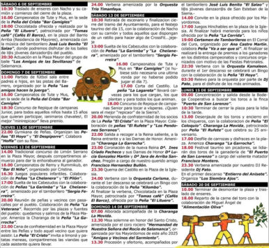 Por un lado, Sorihuela honra al Cristo de Valvanera desde este viernes, con el campeonato de fútbol sala, los hinchables y macro show. El sábado se llevará a cabo la novena y la ofrenda floral, además de la actuación del grupo de coros y danzas Virgen de la Guía, de Santa María del Páramo, de la provincia de León.