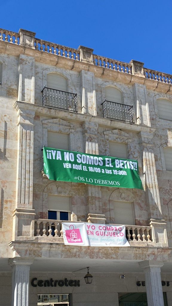 El C.D. Guijuelo ha lanzando una campaña para la nueva camiseta que vestirá el club en las próximas temporadas. Para ello ha situado una pancarta en uno de los edificios de la plaza mayor, con el siguiente eslogan “Ya no somos el Betis ven aquí el 18/9 a las 19:00h. #os lo debemos. Además, por las calles del pueblo hay diferentes carteles con mensajes como “Radio Guijuelo lo conseguisteis”, “Ahora es 100% Todo al verde”, “El de siempre…pero más verde que nunca”.
