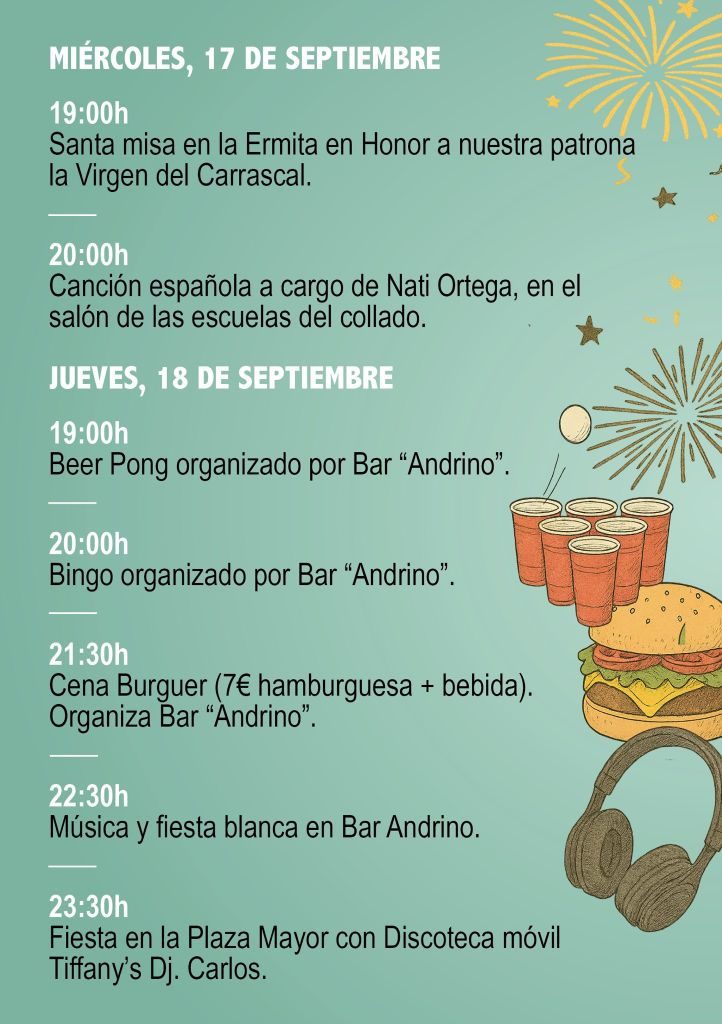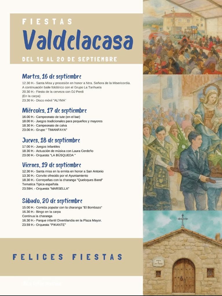 Por un lado, en Valdelacasa hoy celebran campeonato de tute y calva, juegos tradicionales para todas las edades y la actuación de Timanfaya.