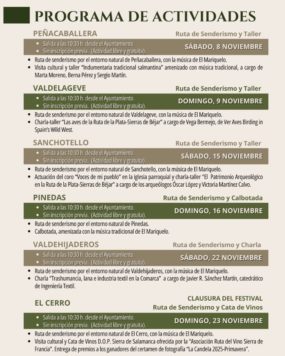 El Festival La Candela Otoño concluirá el domingo 23 de noviembre en El Cerro, con una ruta senderista, una visita cultural, una cata de vino DOP Sierra de Salamanca y la entrega de los premios a los ganadores del certamen de fotografía La Candela 2025 Primavera.