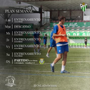 Después de vencer el pasado domingo en Bembibre, el primer equipo del C.D. Guijuelo afronta una nueva semana de trabajo con la vista puesta el choque de este domingo, a las cinco de la tarde, en el Municipal de Guijuelo, ante la Arandina. El último partido en casa fue en sábado. El equipo se ejercitó en la jornada de ayer lunes, hoy hay descanso y volverá a los entrenamientos el miércoles a las 10:00h. La semana se completa el jueves, viernes y sábado.