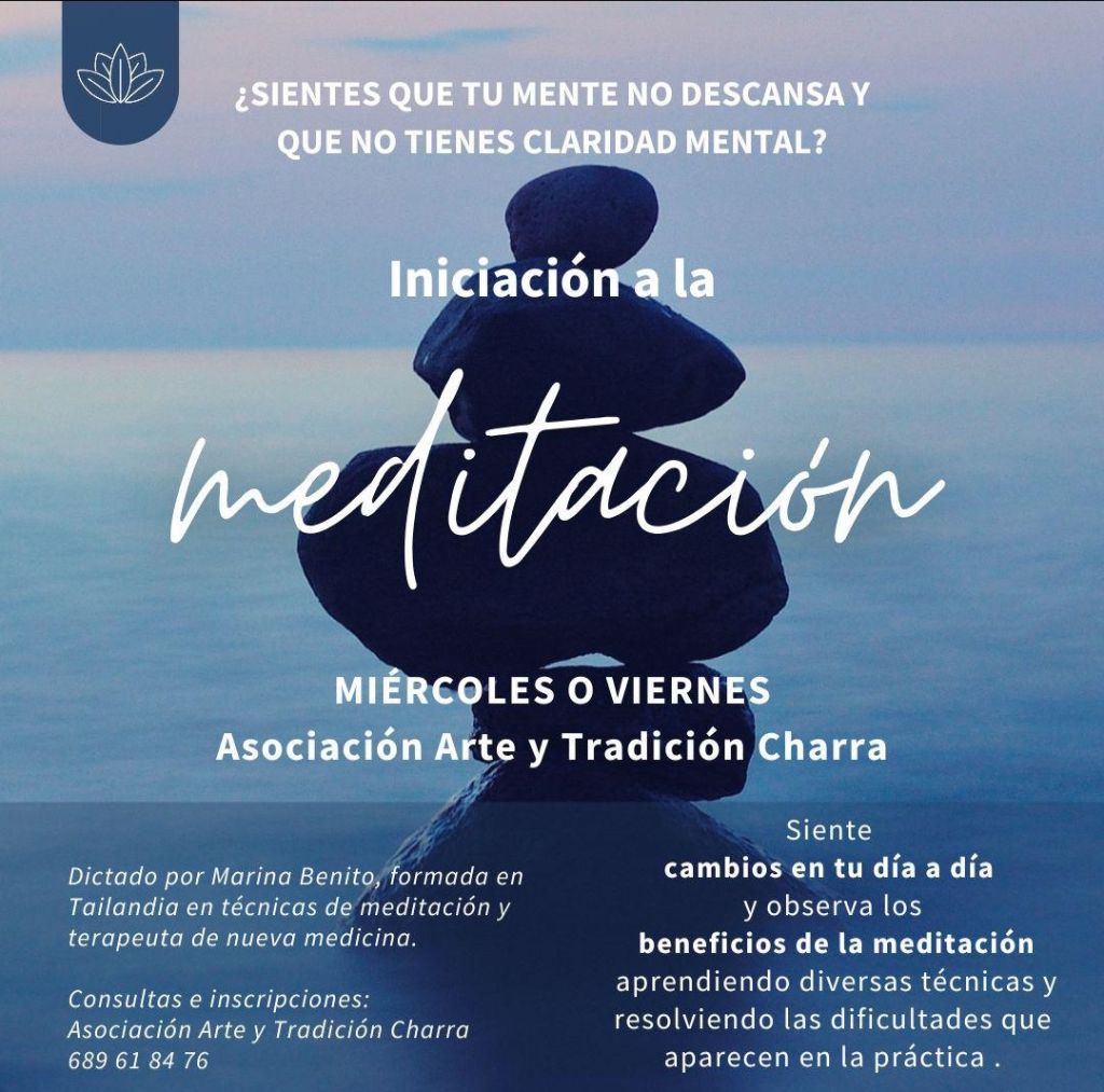 A las actividades habituales del curso en esta agrupación, las responsables de Arte y Tradición Charra han sumado una actividad de ‘Iniciación a la meditación’ que se desarrollará los miércoles o los viernes y que dirigirá Marina Benito. Por el momento, la inscripción esta abierta y se puede realizar en su teléfono, el 689 618 476 y una vez que se establezcan los grupos, se fijarán los horarios de la actividad.