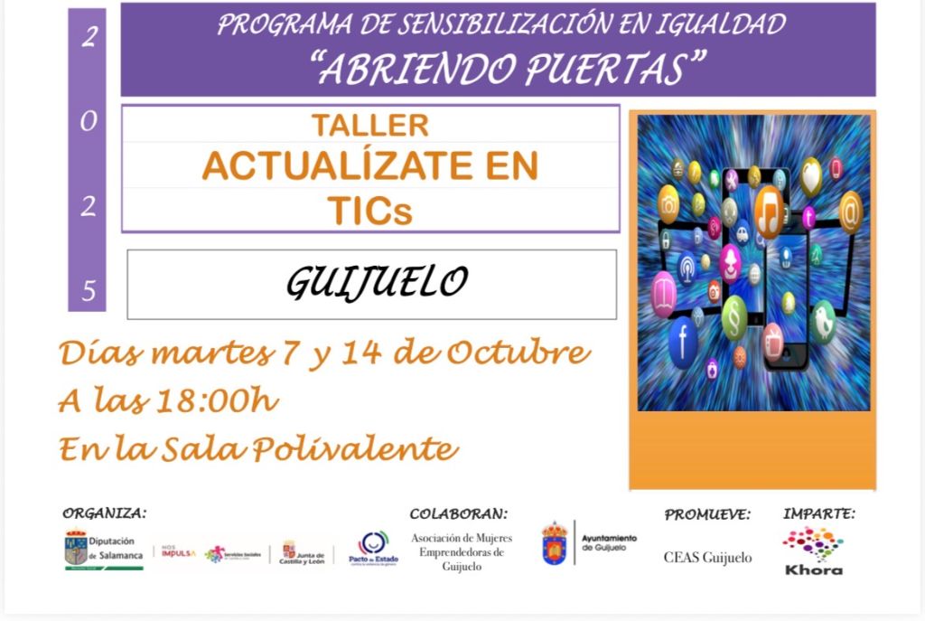 El taller ‘Actualízate en TIC’s’, organizado por Diputación de Salamanca, Pacto de Estado y en colaboración con la asociación de Mujeres Emprendedoras de Guijuelo y el Ayuntamiento del municipio se llevará a cabo a las 18:00h y está abierto a todas las personas que quieran adquirir seguridad y confianza a la hora de utilizar los móviles y otros dispositivos digitales con el objetivo de reducir la brecha digital y poder adaptarse a los nuevos tiempos tecnológicos. Entre otros aspectos se hablará de ciberseguridad, prevención de fraudes y la privacidad dentro de las aplicaciones.