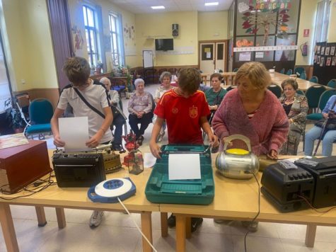 Radiocasettes, tocadiscos y un mapa en formato físico, entre otros objetos se ubicaron en una mesa para que cada uno de los grupos los usase. Una jornada en la que también participó la concejala de Educación y Juventud, Sara García y el equipo del Centro Joven de Guijuelo.