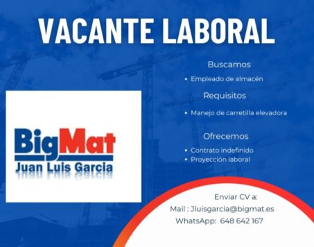 Pueden contactar por teléfono en el 648 642 167 ó enviar su cv a jluisgarcia@bigmat.es