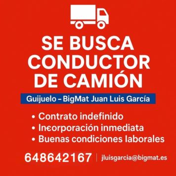 - Conductor de camión: y desde Big Mat ofrecen contrato indefinido, incorporación inmediata y buenas condiciones laborales.