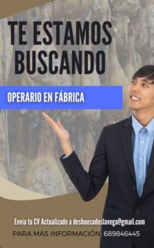 Por otra parte, desde la empresa La Vega de Salvatierra buscan un operario para el sector cárnico. La documentación la pueden enviar a deshuesadoslavega@gmail.com y si necesitan más información pueden llamar al 689 846 445.