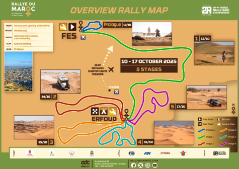 Lorenzo Santolino afronta el último test antes de la cita de mes de enero en el Dakar. Del 10 al 17 de octubre se celebra la última prueba del mundial, el rally de Marruecos. El primer día se reserva para las verificaciones administrativas y técnicas, el 11 es el Briefing, el domingo 12, la prólogo, mientras que la primera etapa arrancará el lunes 13. En total serán cinco etapas en un terreno que se puede asemejar al que se encontrarán los pilotos en el rally Dakar 2026.