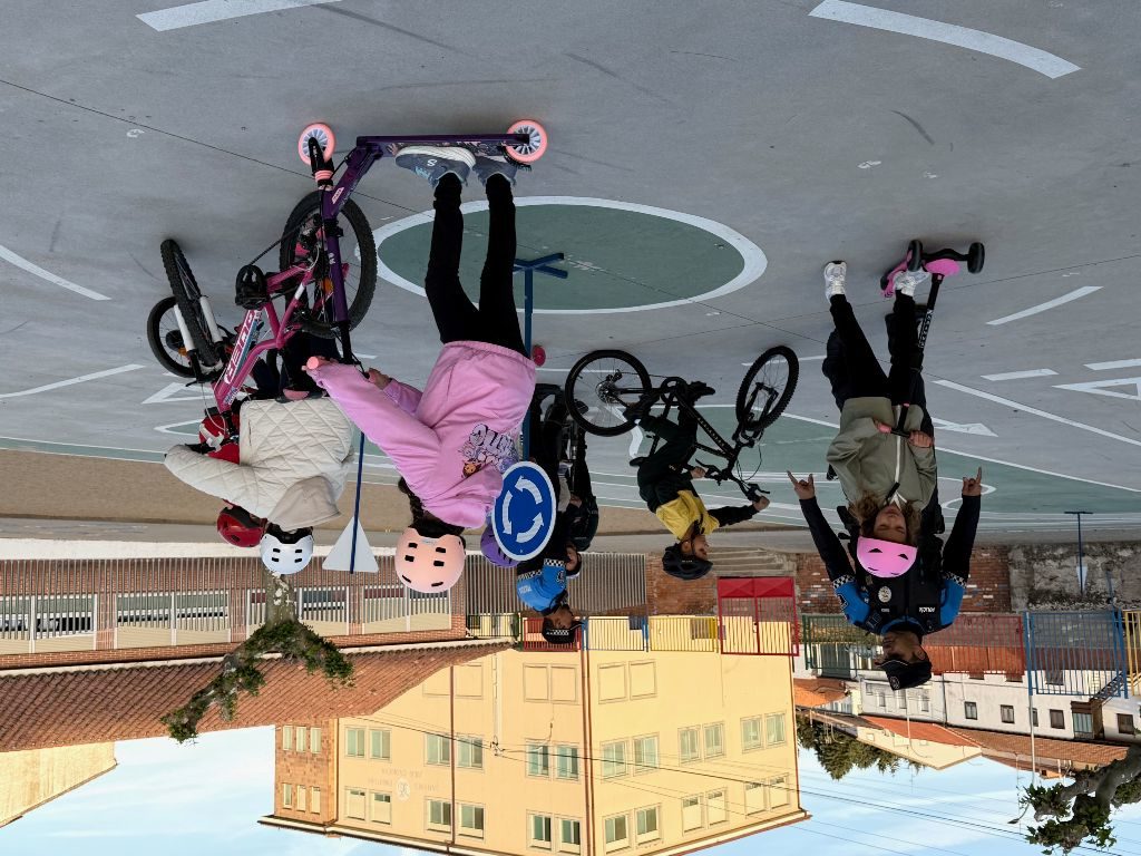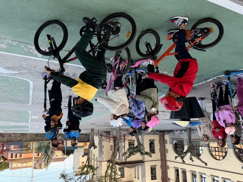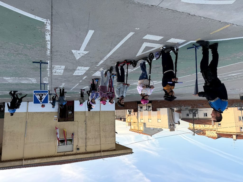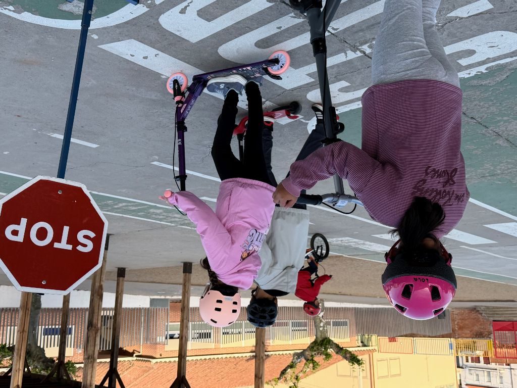Mirar antes de cruzar, respetar la señal de Stop y obedecer el sentido de la rotonda… estas y otras normas de tráfico se han aplicado en la clase práctica de Educación Vial que se ha desarrollado a lo largo de toda la mañana en el colegio Filiberto Villalobos.