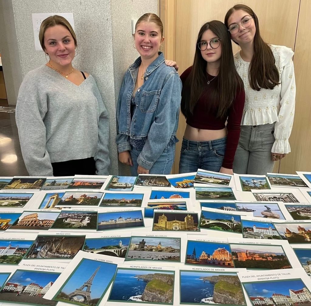 Imágenes de monumentos, palabras en diferentes idiomas y otros conceptos que los estudiantes tendrán que identificar en los juegos que se proponen con el equipo de Guijuelo Joven y con el material que trabajan en las aulas.