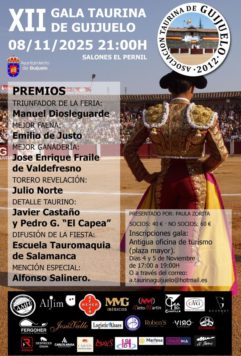 La asociación Taurina de Guijuelo ha dado a conocer el cartel de la XII Gala Taurina que se celebrará el 8 de noviembre.