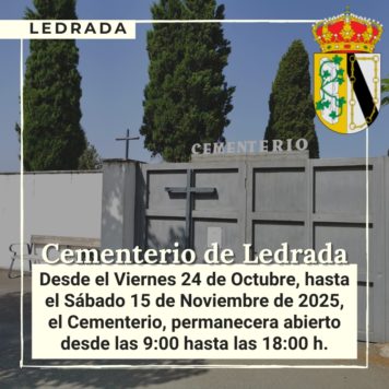 A modo de ejemplo, en Ledrada desde el próximo día 24 de octubre y hasta el 15 de noviembre el cementerio estará abierto desde las 9 de la mañana y hasta las seis de la tarde, de forma ininterrumpida.
