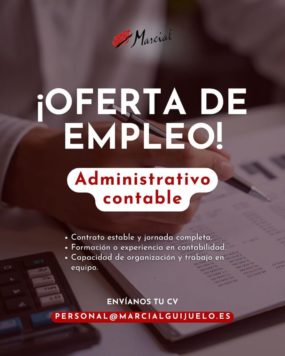 Por su parte, en Marcial Guijuelo buscan personal como administrativo contable a jornada completa y que dispongan de formación o experiencia en contabilidad, además de capacidad de organización y saber trabajar en equipo. Los curriculums los pueden enviar a personal@marcialguijuelo.es