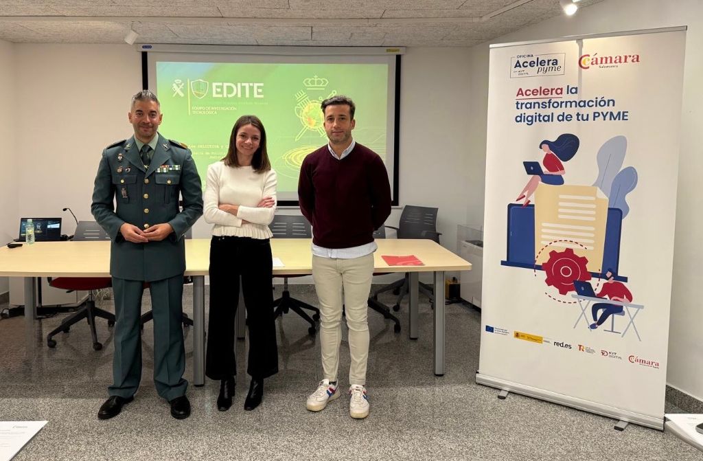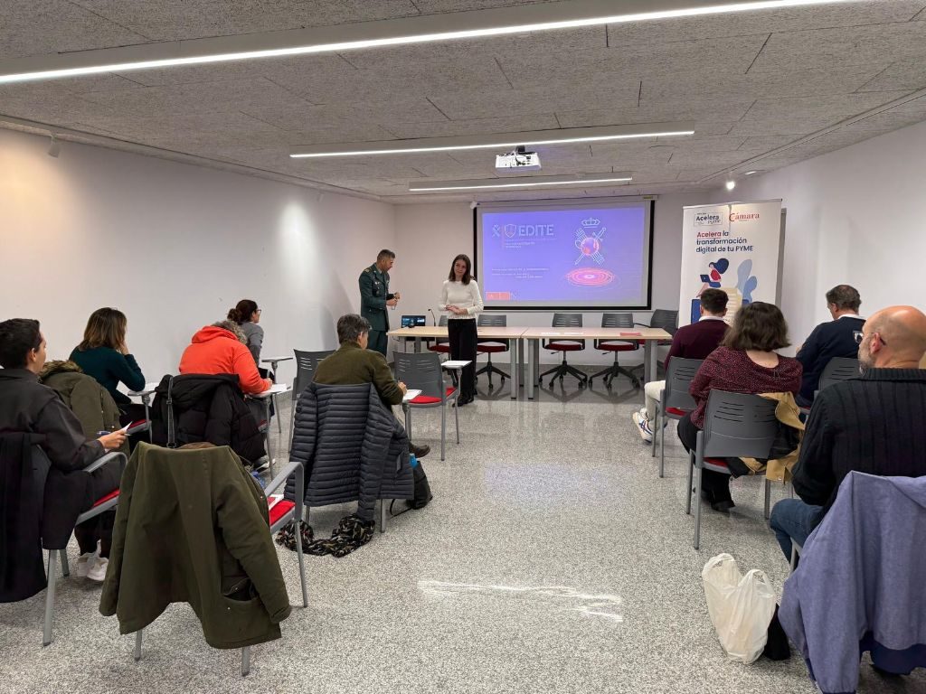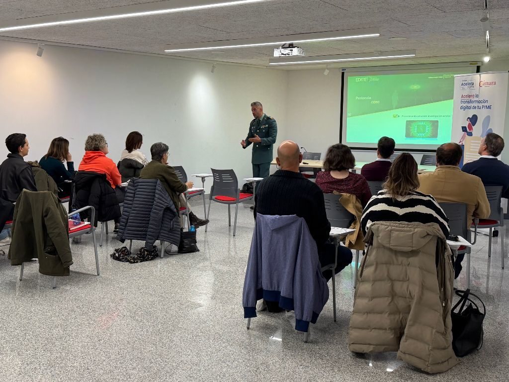 A través de la Oficina Acelera Pyme, Cámara Comercio y Ayuntamiento de Guijuelo se ha ofrecido esta formación destinada a las empresas de cualquier sector y en la que se han expuesto casos reales, se han mostrado los riesgos digitales más comunes, además de herramientas y estrategias prácticas para poder blindar los negocios ante las amenazas digitales.
